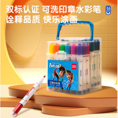 首页 > 办公用品 > > 得力(deli)36色可洗印章水彩笔 儿童涂鸦绘画笔套装幼儿画笔玩具70673-36