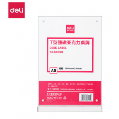 得力 50860 T型强磁亚克力桌牌(透明)透明强磁吸附亚克力桌牌/展示牌/台卡/酒水牌