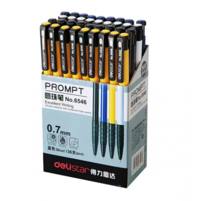 得力圆珠笔办公用品0.7mm黑色红色蓝色笔芯按动式圆珠笔包邮 6546
