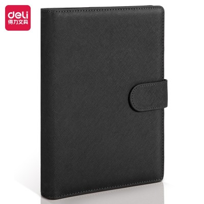 得力(deli)25K100张商务笔记本子 活页本工作记事本子日记本皮面本办公用品 黑色3151