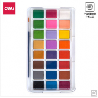 得力73870 24色固体水彩颜料(混)(24色/盒)