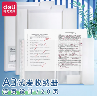 首页 > 办公用品 > 文具 > 得力(deli)72612 活页试卷册 可拆文件夹 收纳文件夹 A3文件夹 20页学科分类册