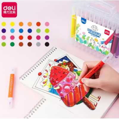 首页 > 办公用品 > 文具 > 得力(deli)马克笔80色学生专用48色水性彩色双头学生套装24色60色36色装 70672双头水彩笔24色(软头+圆头)