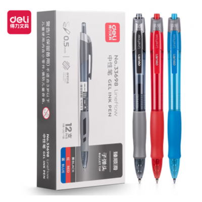 首页 > 办公用品 > > 【臻顺滑油墨】得力笔按动中性笔学生用0.5黑色后红蓝墨蓝商务办 【9黑2红1蓝/盒 臻顺滑_软护套】头33698 0.5mm