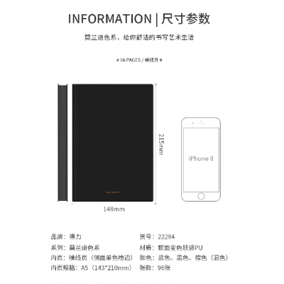 首页 > 办公用品 > 文具 > 得力(deli)A5/96张 皮面插袋横线笔记本子软面记事本 沉稳黑 22284 A5/96页
