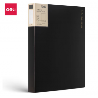 得力(deli)纽赛系列60页编码资料册(黑色)(12个) 收纳册带页码活页档案插袋试卷科目夹 NS192