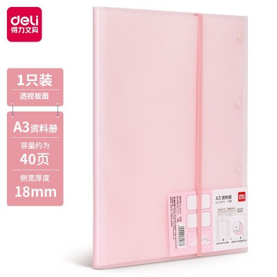 得力(deli)A3资料册孕检资料册 可装A3尺寸对折款 学生试卷收纳册活页插袋 72479 40页 粉色