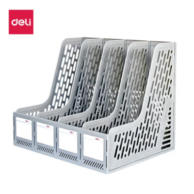 得力(deli)文件框文件盘资料架文件架文件栏办公用品多层学生书立加厚文件筐文件座简易桌上资料架 四联文件框 灰色 9846