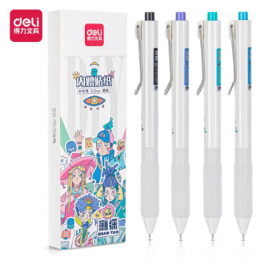 首页 > 办公用品 > > 得力(deli) 臻顺滑按动中性笔黑 德国创意设计 进口油墨精工笔头护套签字笔办公水笔 0.5mm A648丨潮探系列丨4支/盒