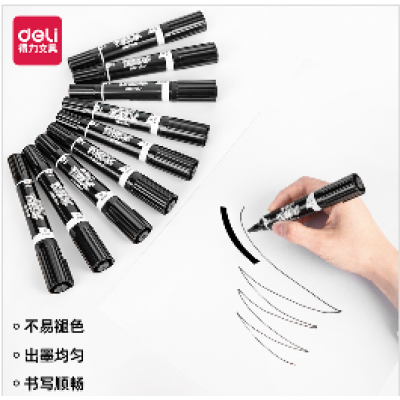 得力(deli)大双头记号笔 S555 黑色