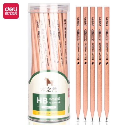 得力33649-HB_50支PET桶装原木三角杆HB铅笔(混)(50支/桶)