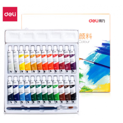 首页 > 办公用品 > 颜料 > 得力(deli) 学生水粉画颜料套装 画具画材 附带画笔调色盘 73864 24色水粉颜料