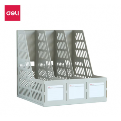 得力(deli)文件框文件盘资料架文件架文件栏办公用品多层学生书立加厚文件筐文件座简易桌上资料架 三联文件框 灰色 9845