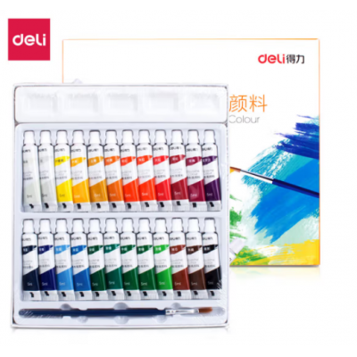 首页 > 办公用品 > 颜料 > 得力(deli)水粉颜料 24色5ml 画画美术专用 水粉画学生儿童入门级套装 (含毛笔调色格) 73864开学高考毕业
