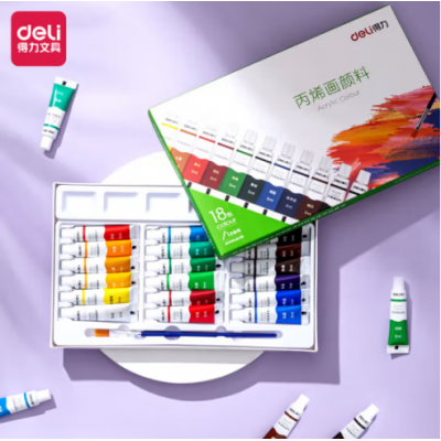 首页 > 办公用品 > 颜料 > 得力(deli)丙烯颜料 18色5ml初学入门套装 画画丙烯画改鞋写生黑板报墙绘手绘儿童成人美术绘画 73914