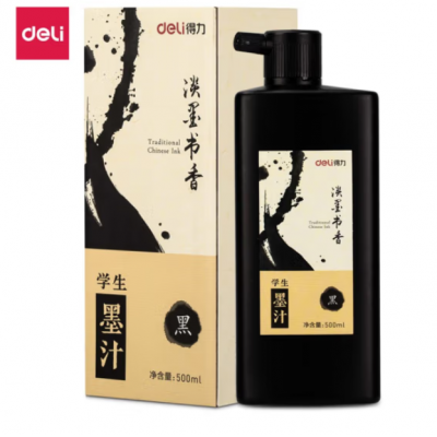 得力(deli) 毛笔墨汁 笔墨纸砚初学毛笔字帖临摹学生书法入门文房 74293 500ml墨水 黑