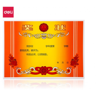 首页 > 纸及纸质品 > 纸及纸板(不包含复印纸) > 得力(deli) 奖状荣誉证书 A4学生表扬表彰证书 儿童奖项荣誉奖状 50张/包 24828 奖状 A4-50张