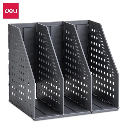 得力(deli)折叠文件框书立三联四联加厚书架可伸缩文件架学生桌面文具p 3栏 小号A5 深灰色-79003