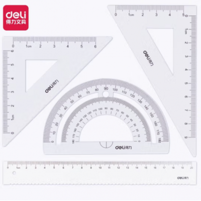 首页 > 办公用品 > 文具 > 得力(deli)金属学生考试绘图套尺 20cm波浪边直尺/三角尺/量角器 文具套装 白色 79522