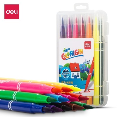 得力软头 水彩笔12色软笔头水彩笔(白)