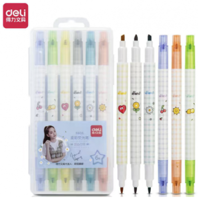 得力双头柔彩荧光标记笔学生用笔记粗划重点手账笔彩色记号笔套装S606