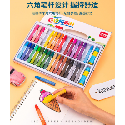 得力(deli) 蜡笔油画棒儿童绘画美术蜡笔涂鸦画笔学生画具美术用品 纸盒装 36色 72053
