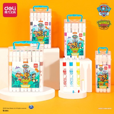 得力(deli)汪汪队立大功12色可水洗印章头学生水彩笔 儿童绘画笔 12色汪汪队水彩笔(混) 70674-12