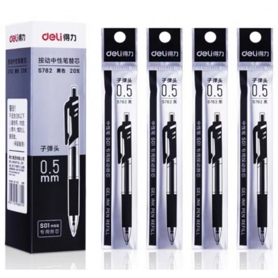 得力(deli) 按动中性笔签字笔 0.5mm子弹头签字笔盒装学生考试文具0.5mm 配套黑色笔芯20支装(S782)