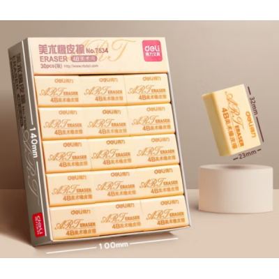 得力(deli)4b小学生橡皮擦素描无屑像笔擦专用超干净不留痕儿童擦得干净幼儿园美术生专用 7534经典款/4B
