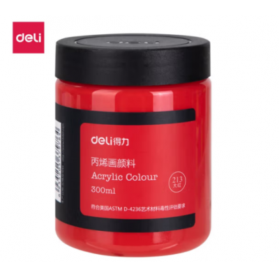 得力(deli)丙烯颜料300ml大容量 墙绘手绘DIY画画 DIY丙烯画大桶装大瓶 美术绘画色彩 画具画材 73875 大红