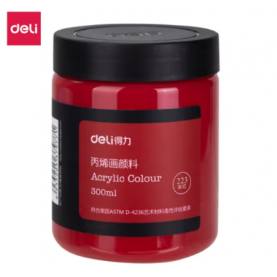 得力(deli)丙烯颜料300ml大容量 墙绘手绘DIY画画 DIY丙烯画大桶装大瓶 美术绘画色彩 画具画材 73875 深红