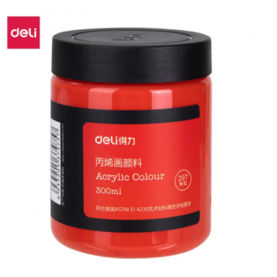 得力(deli)丙烯颜料300ml大容量 墙绘手绘DIY画画 DIY丙烯画大桶装大瓶 美术绘画色彩 画具画材 73875 朱红