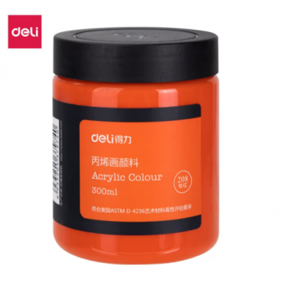 得力(deli)丙烯颜料300ml大容量 墙绘手绘DIY画画 DIY丙烯画大桶装大瓶 美术绘画色彩 画具画材 73875 桔红