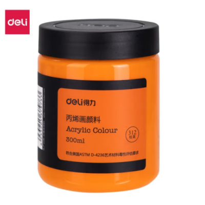 得力(deli)丙烯颜料300ml大容量 墙绘手绘DIY画画 DIY丙烯画大桶装大瓶 美术绘画色彩 画具画材 73875 桔黄