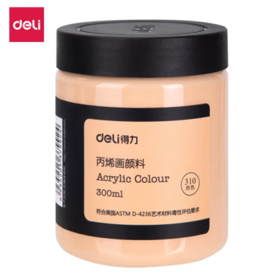 得力(deli)丙烯颜料300ml大容量 墙绘手绘DIY画画 DIY丙烯画大桶装大瓶 美术绘画工具 画具画材 73875 肉色