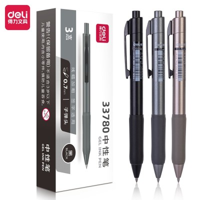 得力(deli) 按动笔中性笔黑笔0.7mm学生用水笔黑色签字 办公用品 33780