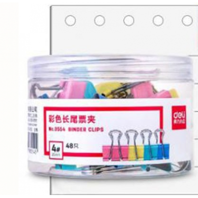 得力(deli) 长尾夹票夹 金属燕尾夹票据夹子 办公用品 8554彩色【25mm】(48只/桶)