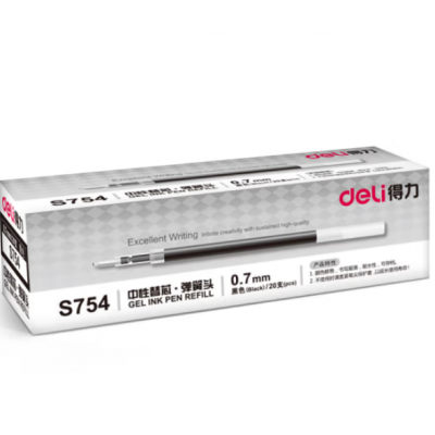 得力(deli) 0.7mm按动中性笔芯替芯水笔替芯心弹簧头办公用品 笔芯【黑色20支/盒】S754