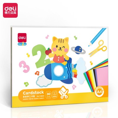 得力 a4彩纸儿童手工纸折纸打印纸彩色a4纸卡纸彩色纸幼儿园剪纸复印纸 74804