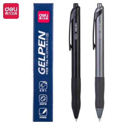 得力(deli)按动中性笔签字笔 学生办公笔 中性笔0.5mm子弹头(黑) 33790