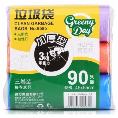 首页 > 用具 > 其他厨房用具 > 得力(deli)9585 彩色垃圾袋 易撕加厚型垃圾袋 家用垃圾袋 办公室垃圾桶袋 45*55cm 颜色随机