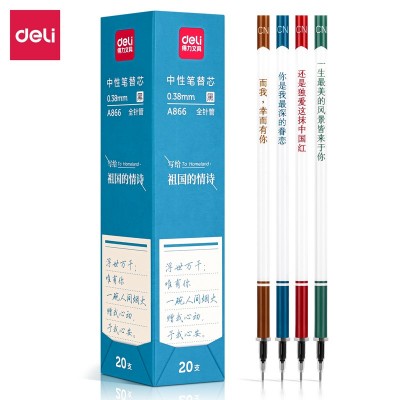 得力(deli) 笔芯签字笔芯 黑水笔芯 学生考试专用中性笔替芯 办公用品 中性笔替芯0.38mm全针管(黑)A866