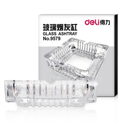 得力(deli)烟灰缸 客厅办公透明玻璃缸 简洁大方 办公用品9579