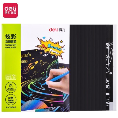 炫彩刮画纸套装(黑) 儿童黑色炫彩刮画纸 儿童刮刮纸黑纸画画刮蜡画纸刮蜡纸画纸套装 74808