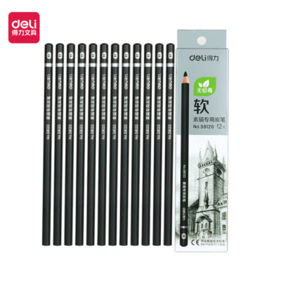 得力(deli)炭笔素描美术学生专用绘画素描炭笔58120石墨铅笔软款2盒共24支