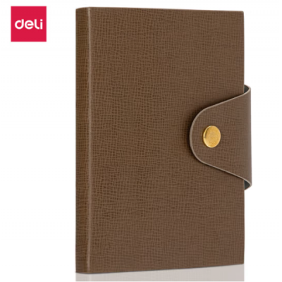 得力(deli)按扣口袋本笔记本 便携随身迷你小号学生记事本手账本会议日记本文具 棕色A7/96张 22267