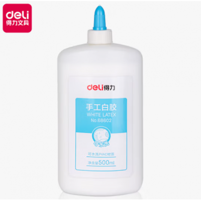 首页 > 办公用品 > 文具 > 得力68602手工白胶500ml/瓶学生DIY手工课用胶水 可手洗白乳胶水 白色 500ml