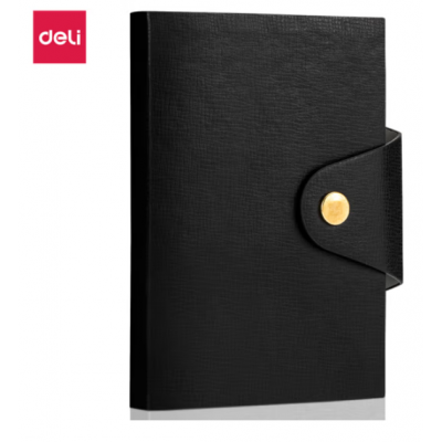 得力(deli)按扣口袋本笔记本 便携随身迷你小号学生记事本手账本会议日记本文具 黑色A7/96张 22267