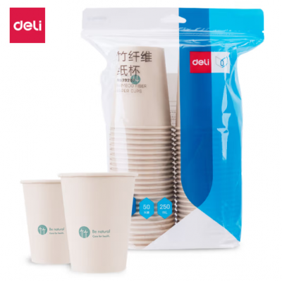 首页 > 用具 > 其他厨房用具 > 得力 (deli) 一次性杯子 纸杯水杯 牛皮纸外层商务双层加厚 19207 竹纤维本色【250ml-50只】
