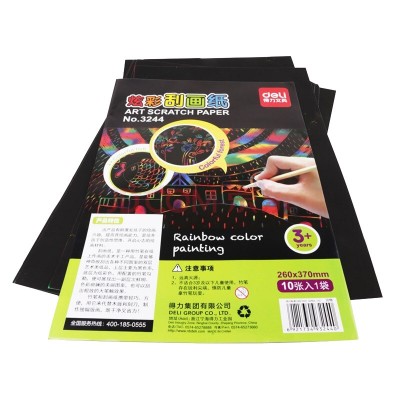 得力(deli)刮画纸儿童彩绘趣味炫彩刮画纸加厚手工刮画绘画玩具儿童节礼物 10张/袋 刮画纸3244(单色)